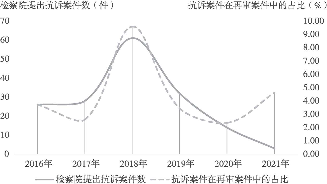 图1-4 2016年至2021年四川地区抗诉案件在再审案件中的占比