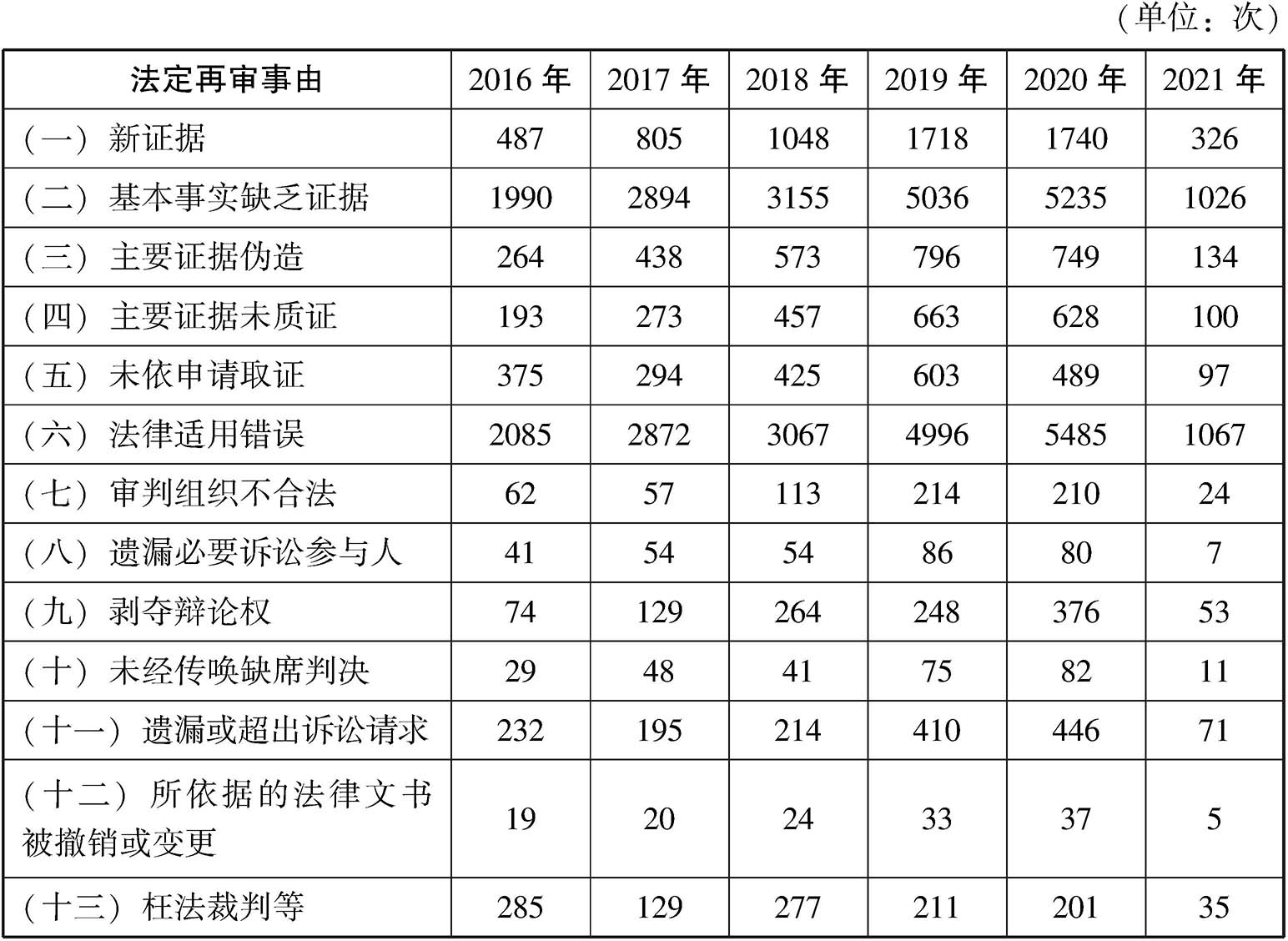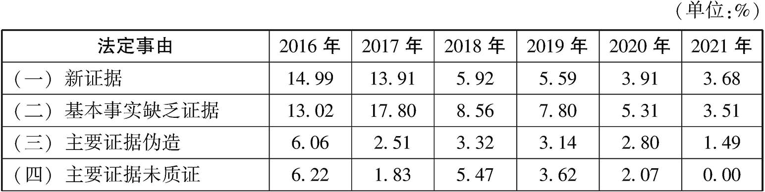 表1-5 当事人申请再审所依据法定再审事由的适用频次