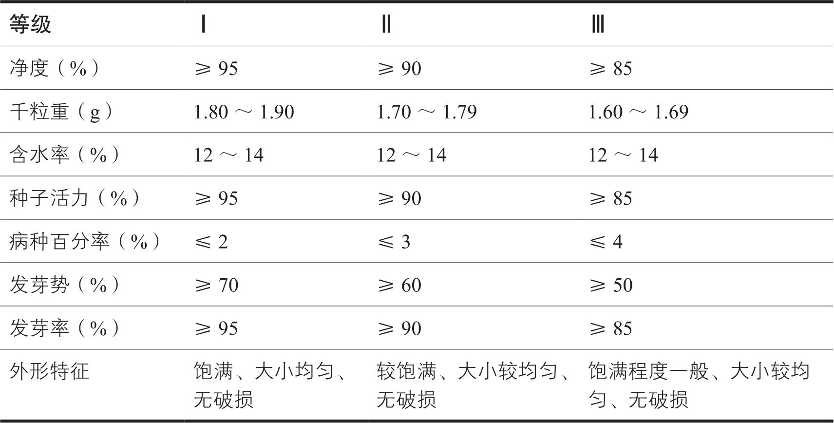 表2-1 川贝母种子分级标准