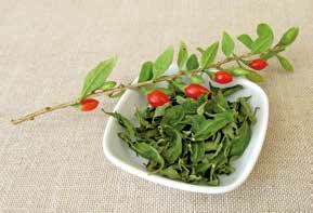 枸杞叶适宜泡茶饮,现在市场上已经有用精选地道宁夏初春枸杞鲜嫩芽制成的枸杞芽茶出售。枸杞芽中不但含有大量人体所必需的甜菜碱、胡萝卜素、维生素C,还富含18种氨基酸及钙、铁、锌、硒等多种矿物质元素。