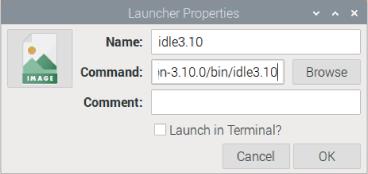 3. 在出现的Launcher Properties对话框中,输入idle3.10,如图1-7所示,然后输入下面这行命令: