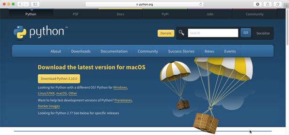 如果你使用的是苹果电脑,你应该已经有预先安装好的Python,但它可能是早期版本的Python。要确保你运行的是足够新的版本,单击spotlight图标(右上角的放大镜),在出现的对话框中输入terminal。打开终端窗口后,输入 python3 --version(两个短横线后跟着单词version),按下回车键。如果看到“命令不存在”或者版本低于3.10,用浏览器打开Python官方网站的下载页面来下载最新版本的苹果安装程序,如图1-3所示。