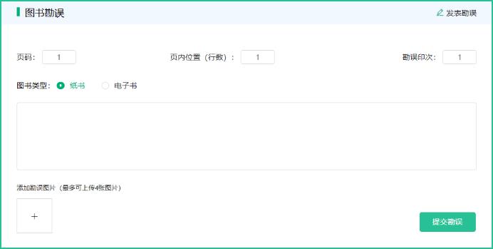 当您发现错误时,请登录异步社区(https://www.epubit.com),按书名搜索,进入本书页面,点击“发表勘误”,输入勘误信息,点击“提交勘误”按钮即可(见右图)。本书的作者和编辑会对您提交的勘误进行审核,确认并接受后,您将获赠异步社区的 100 积分。积分可用于在异步社区兑换优惠券、样书或奖品。