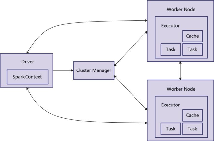 ●Cluster Manager负责申请和管理在Worker Node上运行应用所需的资源,包括Spark原生的Cluster Manager、Mesos Cluster Manager和Hadoop YARN Cluster Manager。