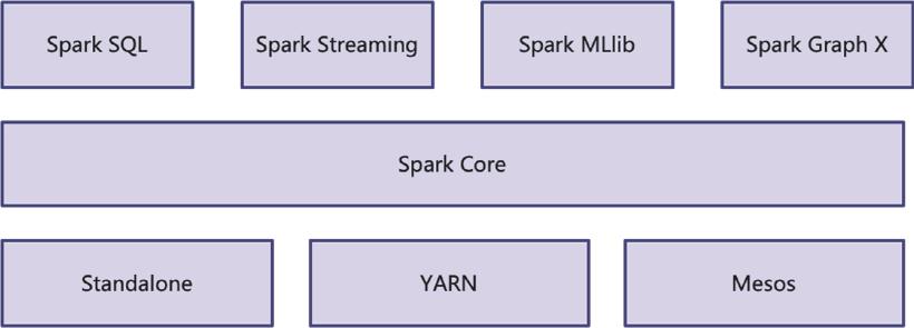 Spark集群的资源管理模式主要有Standalone、YARN和Mesos 3种。资源管理框架之上主要是Spark Core模块,它实现了Spark最基础的功能。Spark Core模块之上是更高层的API,主要由Spark SQL、Spark Streaming、Spark MLlib和Spark Graph X组成,如图1-1所示。