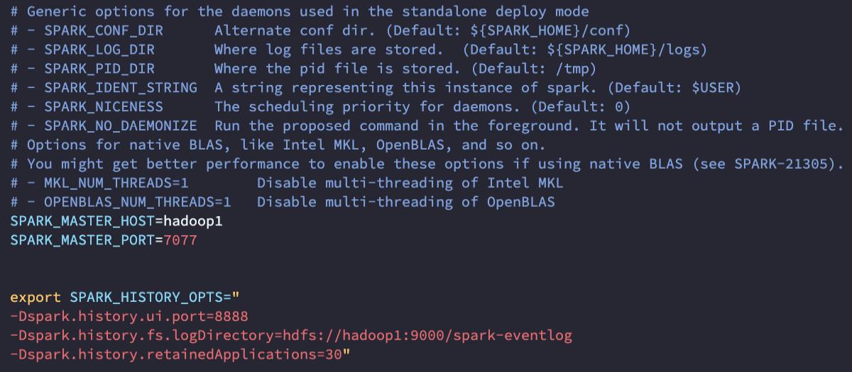 [hadoop@hadoop1 ~]$ vi /opt/module/spark/conf/spark-env.sh