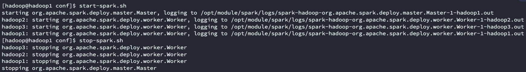 [hadoop@hadoop1 conf]$ start-spark.sh[hadoop@hadoop1 conf]$ stop-spark.sh