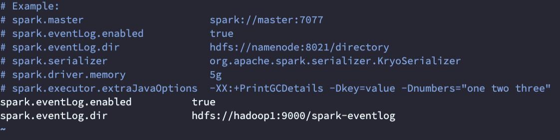 [hadoop@hadoop1 ~]$ vi /opt/module/spark/conf/spark-defaults.conf