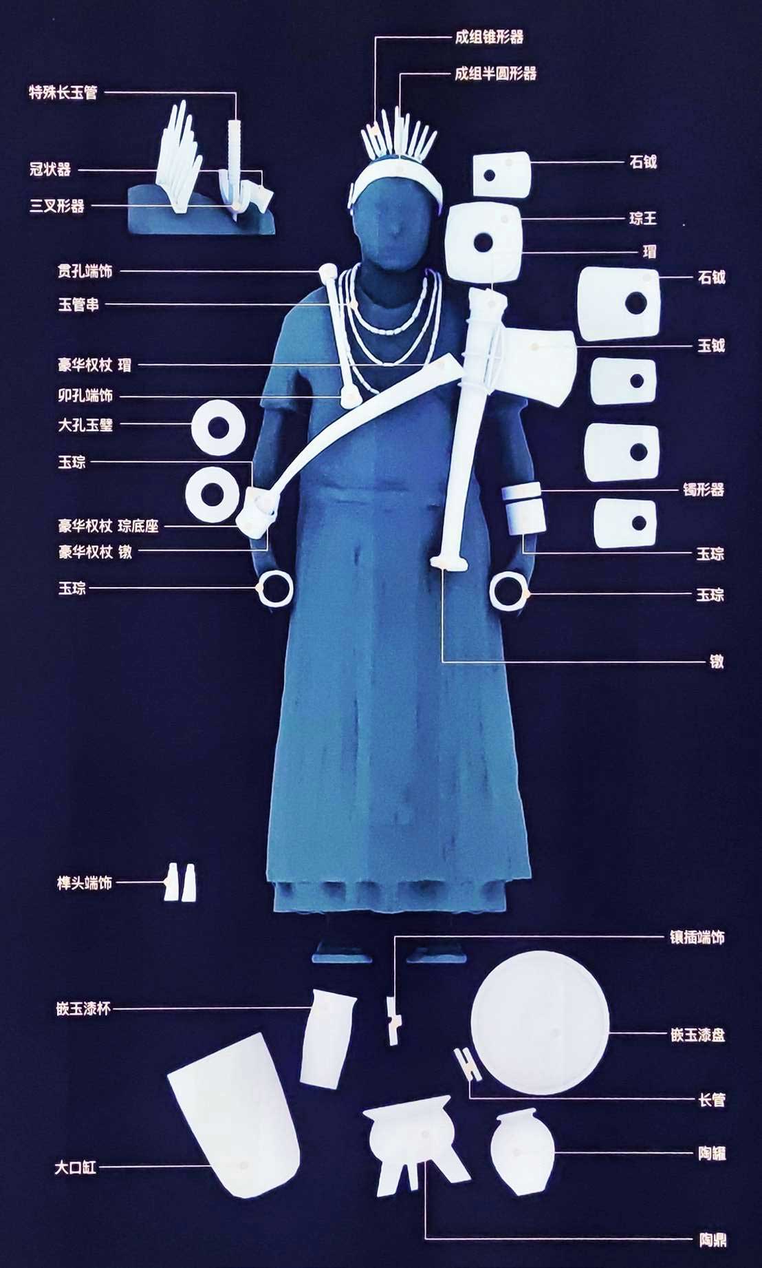 成组圆牌:成组圆牌是在反山、瑶山发掘时根据出土状况和器物形态命名的,由钻系孔的小璧环和玦式圆牌组成,是女性权贵的专属随葬品。