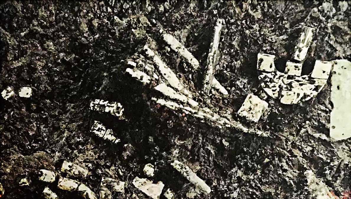在反山12号良渚王墓中,还有一件非同寻常的器物——豪华型权杖。它出土时横置于墓主上半身处,和玉钺一样,权杖顶端为玉瑁,底部为玉镦,连接两者的主体部分也是木制的,已经腐朽不见。权杖顶端的瑁饰有神人和兽面,权杖的镦置放于一件玉琮的射孔内。玉瑁与玉镦上都雕有神像,充满威严、神秘之感。上海青浦福泉山遗址出土的象牙权杖,长约1米,由镦和主体两部分组成。其上雕刻精密繁缛的细刻纹饰,利用浅浮雕手法细致地表现10组神人兽面纹主题,主题纹饰外以细密卷云纹为地。它的发现也说明了良渚文化礼器系统中,除了以往认为的玉质礼器,还存在以稀有资源为材料的其他质地礼器。