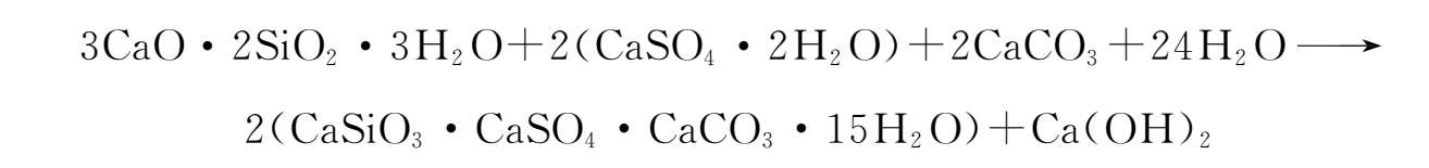 当硫酸根离子和碳酸根离子同时存在的时候,还有可能会共同作用于水合硅酸钙,使其发生分解,生成硅灰石膏(thaumasite):