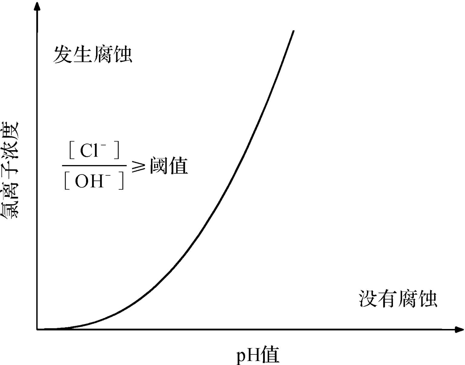 图3.1 氯离子浓度和pH值对钢筋腐蚀的影响