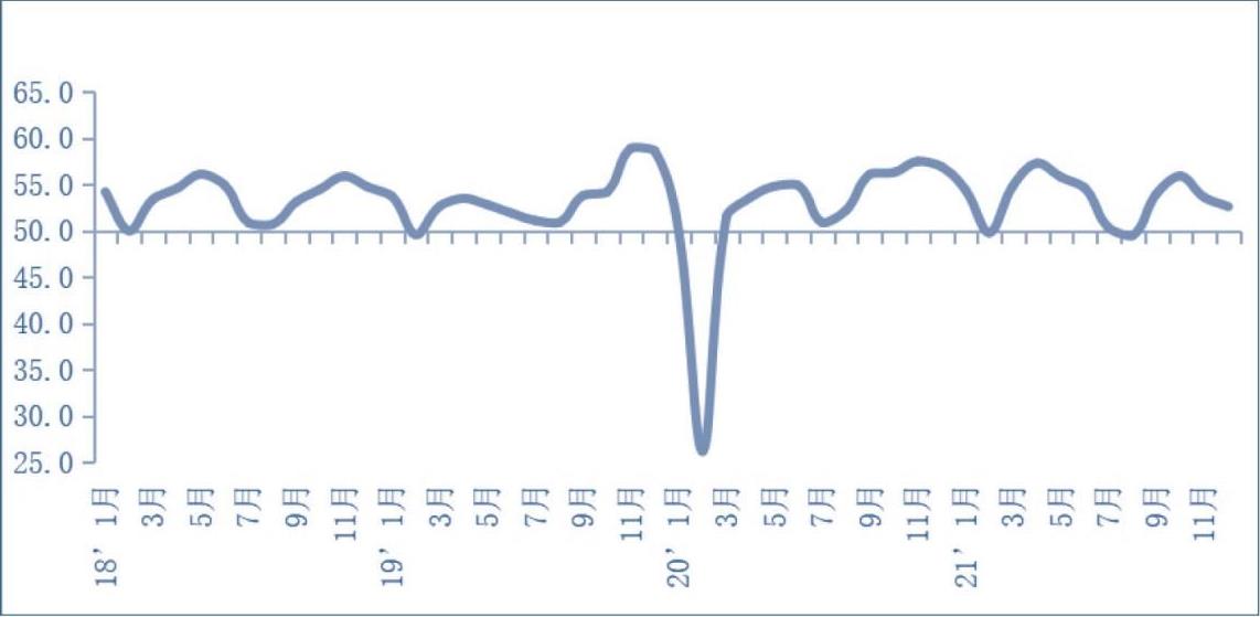 登录中国物流与采购网,点击“统计数据”,查看我国物流业景气指数,并分析其变化趋势,如图1.1.7所示。
