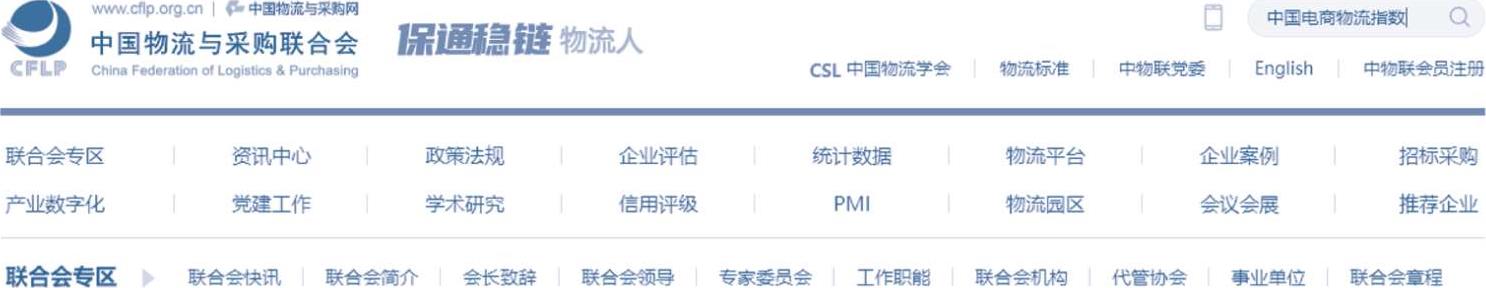 登录“中国物流与采购联合会”,如图1.1.6所示。在搜索栏输入关键词“中国电商物流运行指数”,了解最新的中国电商物流运行指数,并分析其变化趋势。