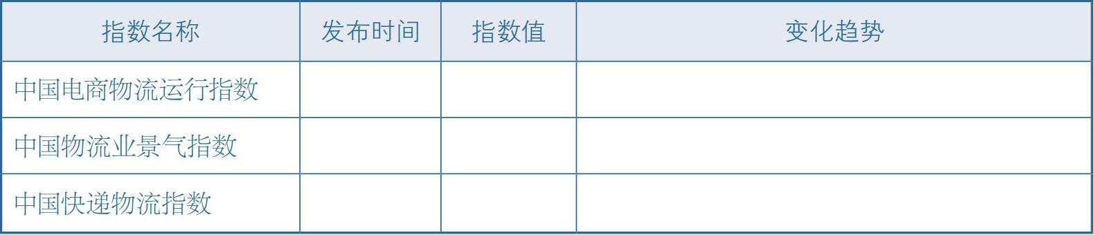 收集最近一个月的电商物流相关指数,并分析其变化趋势,完成表1.1.4。
