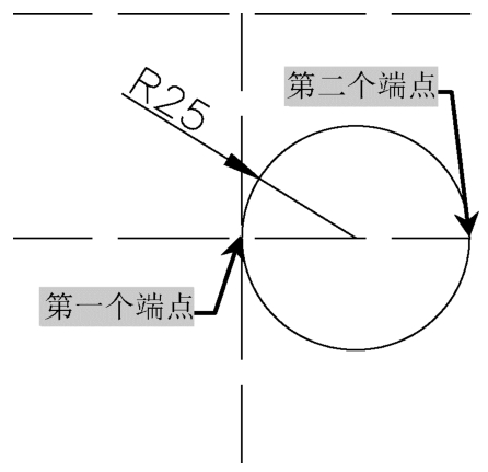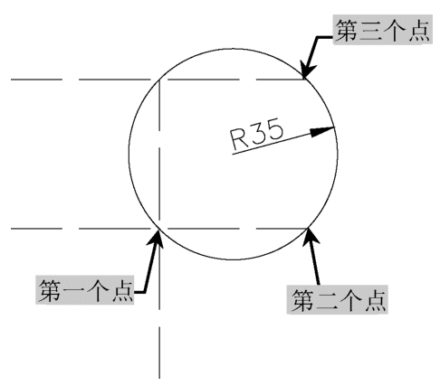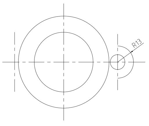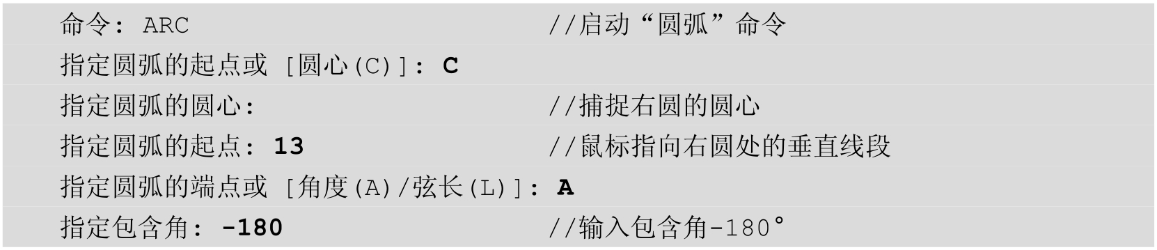 Step 10 使用“圆弧”命令(Arc),捕捉右侧圆的圆心,绘制半径为13的圆弧;其命令行提示如下,绘制的圆弧如图3-89所示。