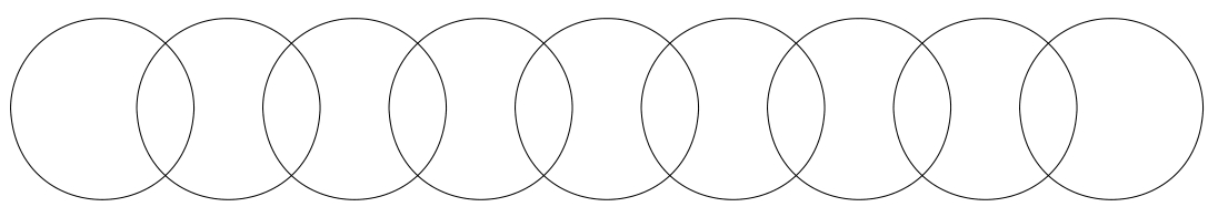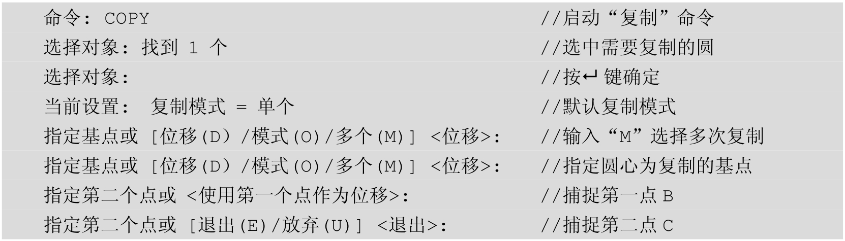 Step 03 执行“复制”命令(CO),选择上一步绘制的圆,捕捉圆心为基点,在正交模式下水平向右拖动;输入复制距离为55,将圆向右等距离复制出8个,如图3-80所示。