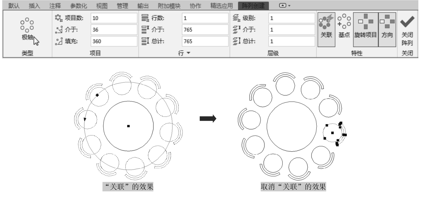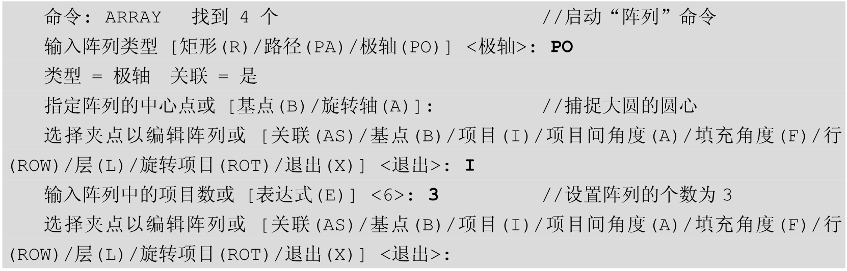 Step 18 执行“阵列”命令(AR),选择“极轴(PO)”选项,进行项目数为3的阵列操作,如图3-96所示。