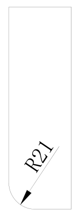 Step 07 在“修改”面板中单击“圆角”按钮 ,当命令行提示“选择第一个对象或[放弃(U)/多段线(P)/半径(R)/修剪(T)/多个(M)]:”时,选择“半径(R)”选项,输入半径为21;当提示“选择第一个对象:”时,选择矩形左侧的垂直线段,然后选择矩形下侧的水平线段,从而对矩形进行半径为21的圆角操作,如图3-104所示。