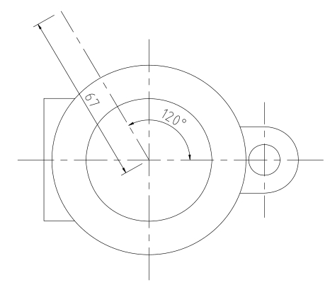 在输入的坐标值中,“@67<-120”是相对于本案例中的圆心而确定的,故称为相对值坐标;前面的“@”符号代表相对符号;“67”代表距离;“<120”代表角度。