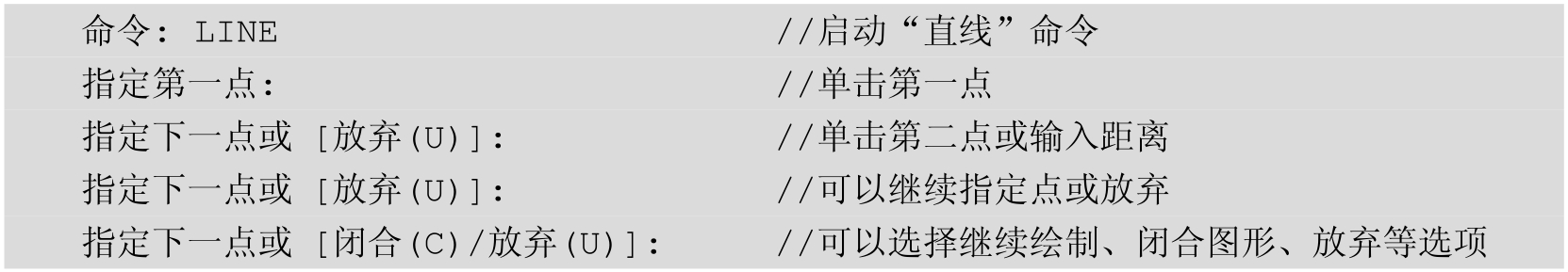绘制直线段的命令是“LINE”,该命令是最基本、最简单的直线绘制命令。用户可以通过以下几种方法来执行“直线”命令。