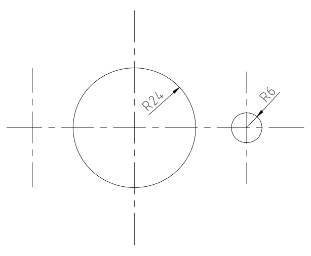 Step 08 使用“圆”命令(C),分别捕捉中端线段和右端线段与垂直线段的交点作为圆心,绘制半径为24和6的圆,如图3-87所示。