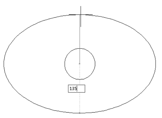 Step 03 在“绘图”面板中单击“椭圆”按钮 ,根据命令行提示,选择“中心点(C)”选项,再捕捉上一步绘制的圆的圆心作为椭圆的中心点;将鼠标向右拖动,输入轴端点为200,如图3-98所示;然后将鼠标向上拖动,输入另一半轴长度为135,如图3-99所示,从而绘制椭圆,如图3-100所示。