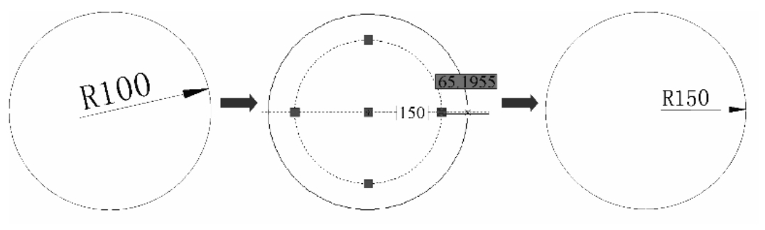 Step 09 使用“偏移”命令(O),将左侧的圆对象向外偏移13,如图3-88所示。