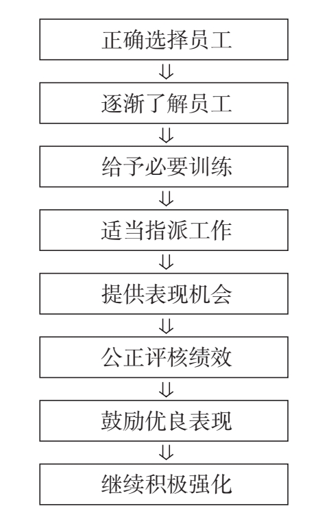 工作的标准应该明确,然后予以公正地考核。绩效优良的员工,依照规定给予奖励,以资强化。这一部分措施,如果做得合理,便能够发挥激励的效果。组织提供机会,在员工表现优良时,给予其应得的认可或奖赏,使其获得自我满足,便是有效的激励。