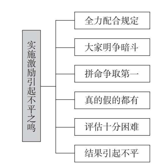 既然不激励不行,那么实施激励就是了。不过,事实上并没有那么简单。因为实施激励,难免有一些规定,然后配合奖惩,以增强效果。中国人相当机灵,马上动脑筋,全力做到符合规定,这时真的、假的、半真半假的、亦真亦假的,都派上用场,弄得考核的人头昏脑涨,很不容易分辨清楚,以致每次公布结果,大家都觉得不公平。这样一来,大家愤愤不平,徒然把激励的效果抵消了,有时还会引发一些反效果(如图 1–3)。