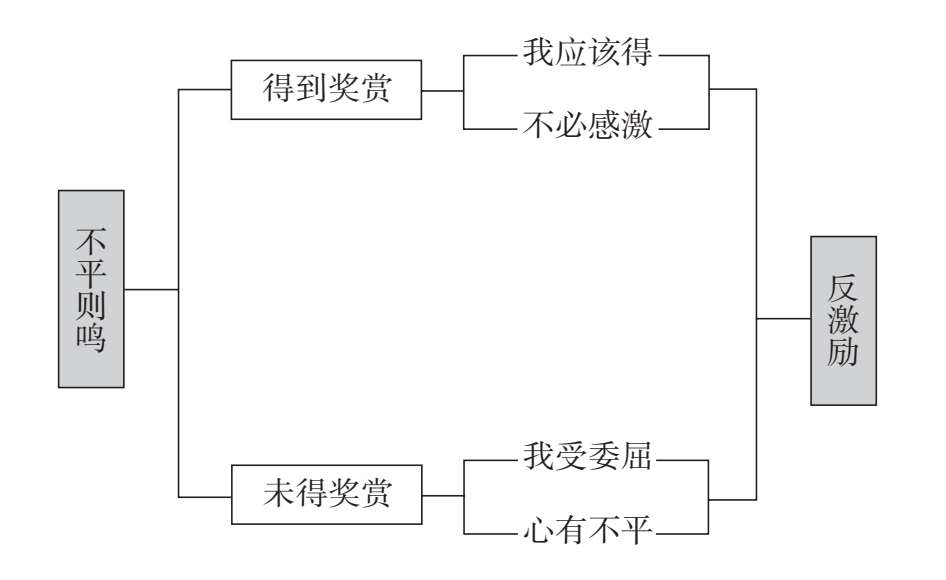 得到奖赏的人,毕竟是少数,他们认为奖赏是自己努力得到的报酬,心里不感激;得不到奖赏的人,可能居多数,他们认为遭受不公平的待遇,心里不服气。这些反应,往往抵消了激励的功能,不可不慎(如图 1–4)。
