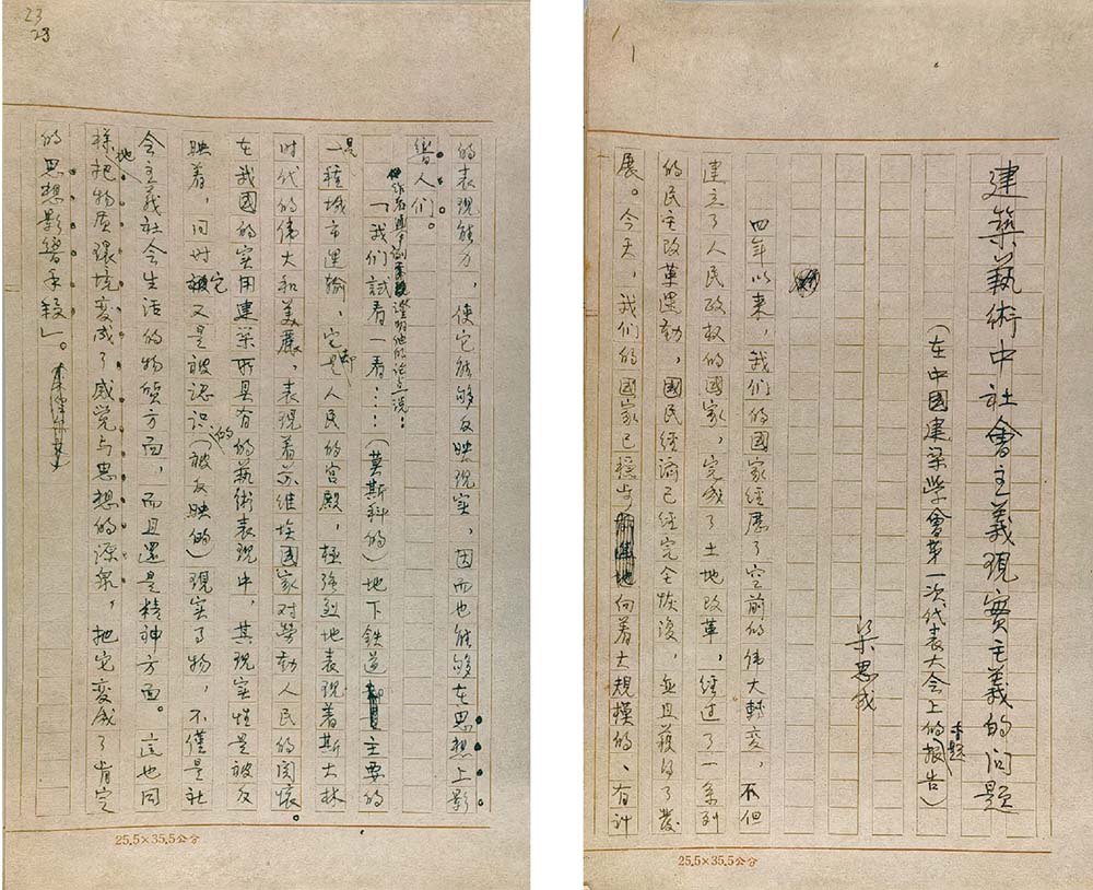 梁思成《建筑艺术中社会主义现实主义的问题》手稿