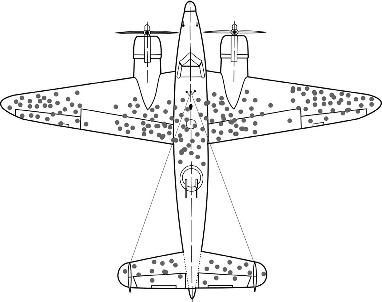 第二次世界大战是飞机战的开端,谁抢到了制空权,谁就占据了主动。战争期间,几乎每天都有大量飞机参战。于是问题就来了,飞机中弹乃至失事再正常不过,该怎么提高飞机的存活率呢?1943年,美国空军就如何加固飞机来咨询统计学家瓦尔德。因为飞机能够搭载的护甲有限,所以需要选择性地合理分配护甲。当时美国人一贯的做法是将护甲装在飞机机翼和尾部。空军负责人说,选择这些部位搭载护甲是因为那些顺利返航的飞机的这些部位布满了弹孔。瓦尔德意味深长地说:“这么做是不对的”。这些完成任务的飞机在机翼和尾部布满了弹孔,说明飞机被命中这些部位后,它仍然能工作,至少它返航了。瓦尔德随即问道:“那些被命中其他部位的飞机最终到哪里去了?”空军负责人哑口无言,显然它们一去不返。瓦尔德立刻给出了结论,应该在那些顺利返回的飞机没有弹孔的部位加固护甲。这就是有名的“幸存者偏差”。这一理论在今天仍然有着很强的现实意义,我们瞬间就可以理解幸存者偏差,比方说你发现一些没读过书的人很有钱,事实上是你发现的这些“不读书却很有钱的人”是幸存者,而大部分“死亡”的人你都见不到。