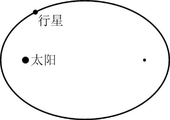 图 1-11 根据开普勒第一定律,太阳位于椭圆轨道的一个焦点
