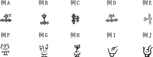 第三,汉字职能的发挥,是由两个不可缺少的环节合成的,这就是书写和辨认。就书写而言,人们终是希望符号简单易写;而就辨认而言,人们又希望符号丰满易识。然而越简化,就越易丢掉信息,给识别带来困难;追求信息量大、区别度大,又难免增加符形的繁度,给记录增加负担。二者的要求是矛盾的。汉字就在这易写与易识的矛盾中,不断对个体符形进行调整,以实现简繁适度的优化造型。调节字形的杠杆是汉字的表意性质。汉字总是不断减少构件与笔画,来减少书写的困难和减轻记忆的负荷,但是,这种简化一般是在不影响表意与别词的前提下进行的。汉字在第一次规范的时候做过一次有意识的省减,这就是从大篆到小篆的省减,这次省减主要是省去多余的部件。例如: