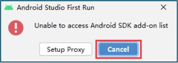首次运行 Android Studio 时,系统会询问是否将 Android SDK 加入更新任务列表,这里单击【Cancel】按钮,如图1-15所示。然后在Android Studio安装向导界面中单击【Next】按钮,如图1-16所示。