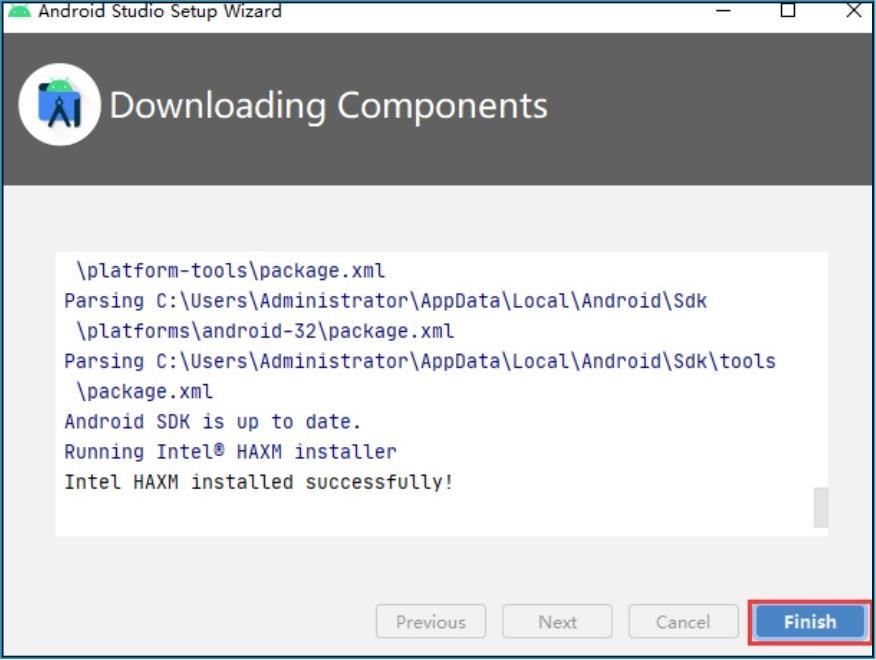 下载并安装完成后可以看到 SDK 安装的路径等信息,单击【Finish】按钮完成安装向导设置,如图1-21所示。