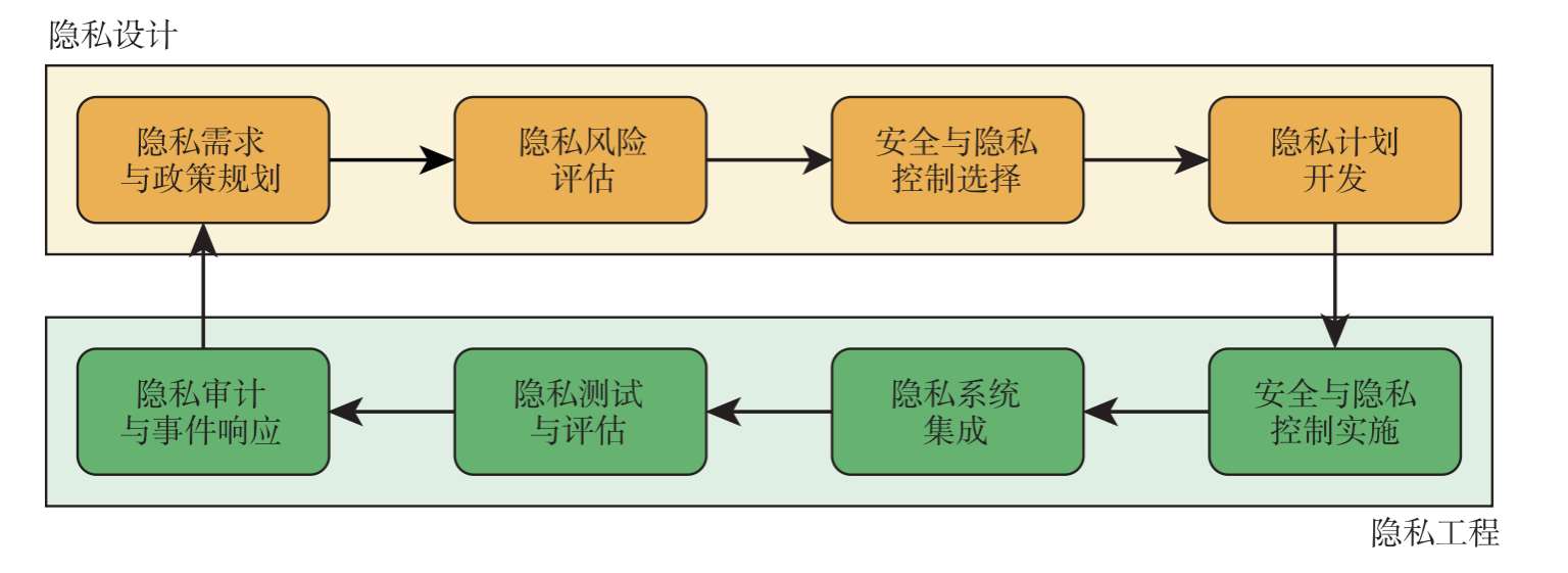 在隐私保护的实践过程中,一种面向隐私开发生命周期的框架—— 隐私设计与工程 逐渐衍生出来。它将隐私保护嵌入信息系统构想、设计、实施与应用的全过程中,把“事后补救”变为“事前防控”。与此同时,隐私与安全密切相关,而潜在效用则是隐私保护的恒久命题。本节逐一介绍这些概念。