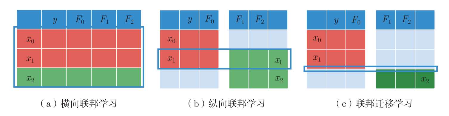 图3.2 不同联邦学习中数据特征空间和数据样本空间的重叠方式