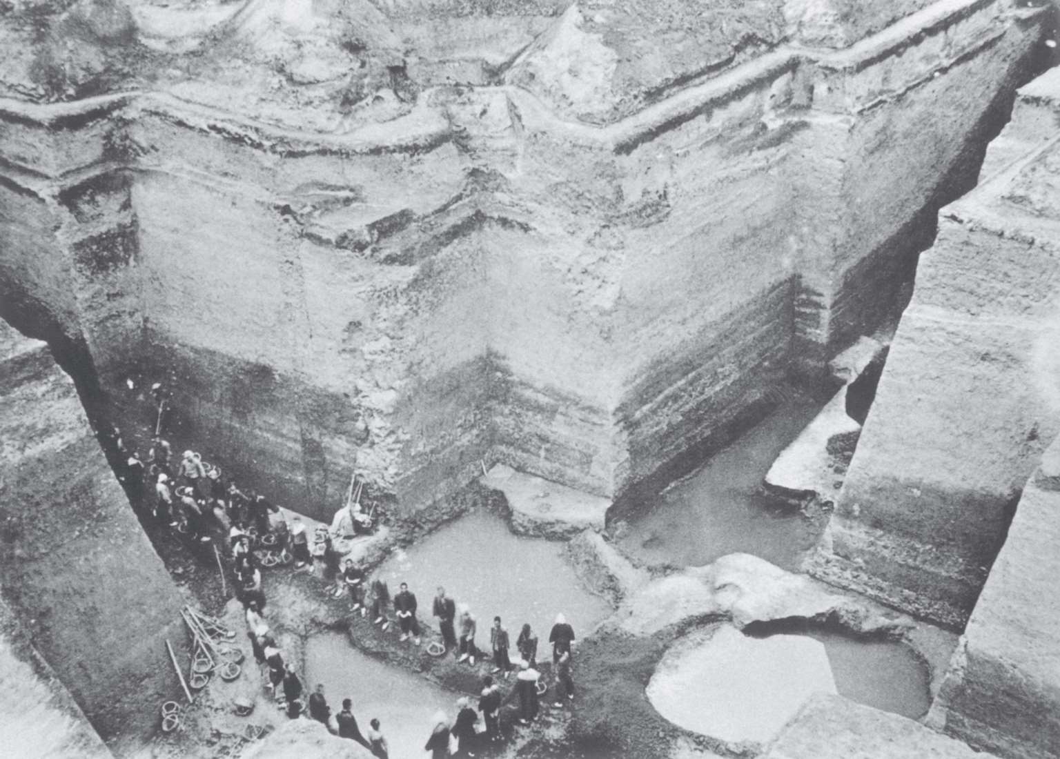 ◎1929年秋,李济在河南安阳主持殷墟第三次发掘,挖出彩陶片的情形