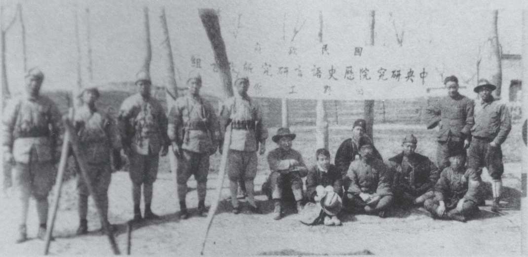 ◎1929年第二次安阳发掘合影。坐者左一李济、左二裴文中,右立者右二董作宾、右一董光忠,左立五人为冯玉祥派出的护兵,坐者右四人为护兵长官