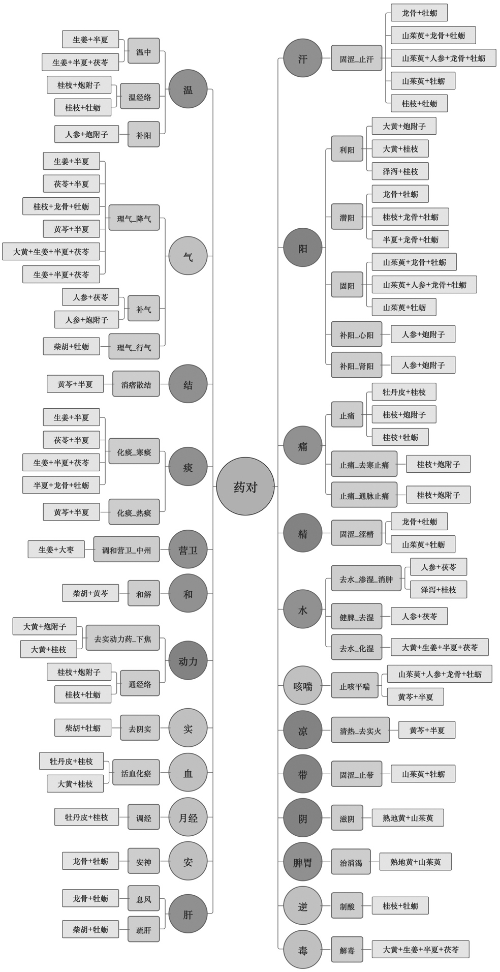 这个方子是一个寒热性平均但补性很强的方剂,值得注意的是其药物动力学上的收性和降性特别强,这是因为有潜阳的药物如龙骨、牡蛎在其中,并且很多补性的药物也都带有收性和降性。
