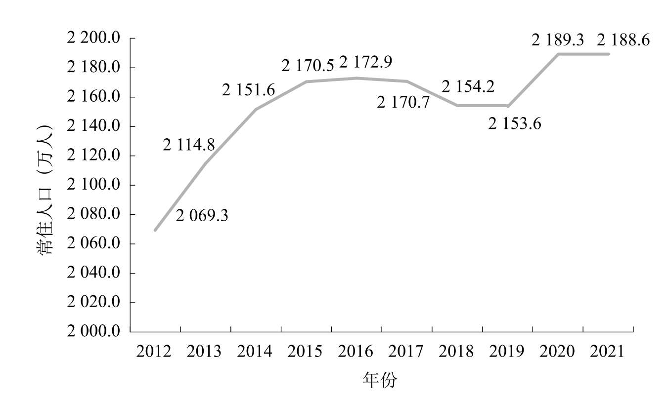 图2-4 2012—2021年北京市常住人口趋势