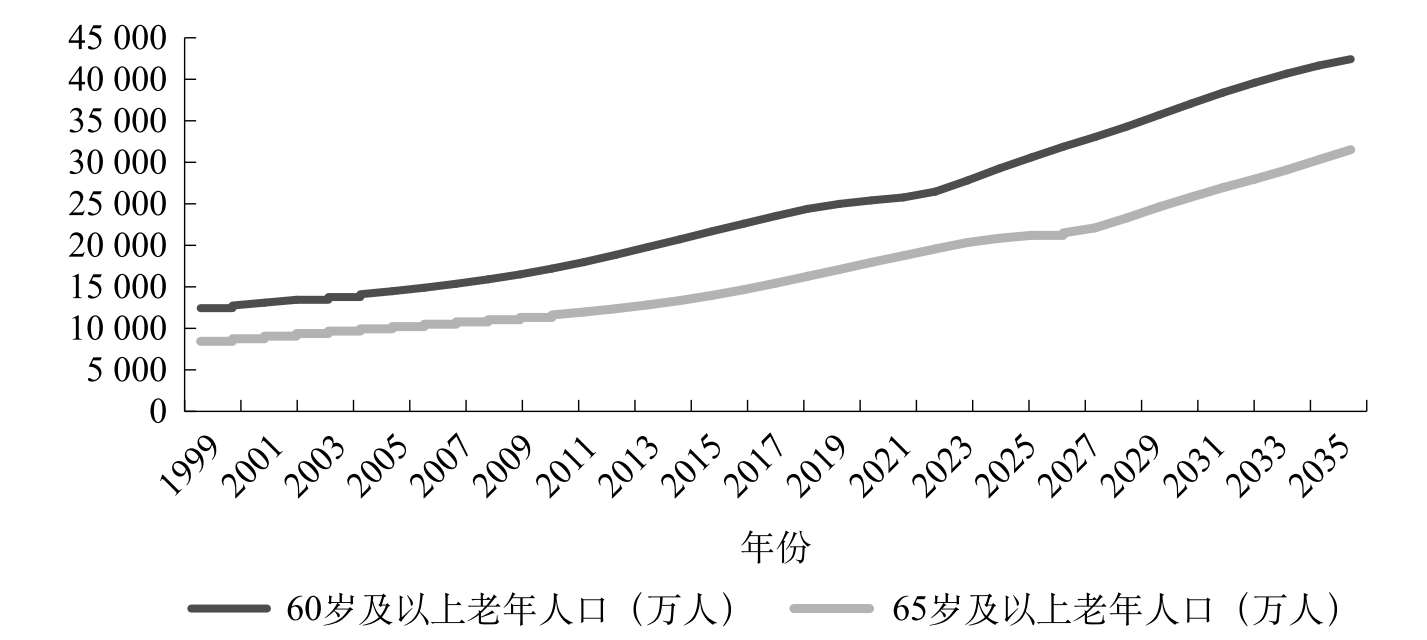 图1-5 1999—2035年中国60岁及以上、65岁及以上老年人口总量趋势