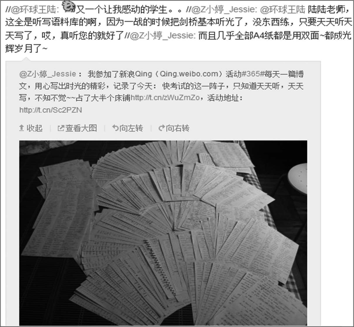 最后,感谢Z小婷同学的语料库听写图片。然后把大家夸我的微博也show off一下。