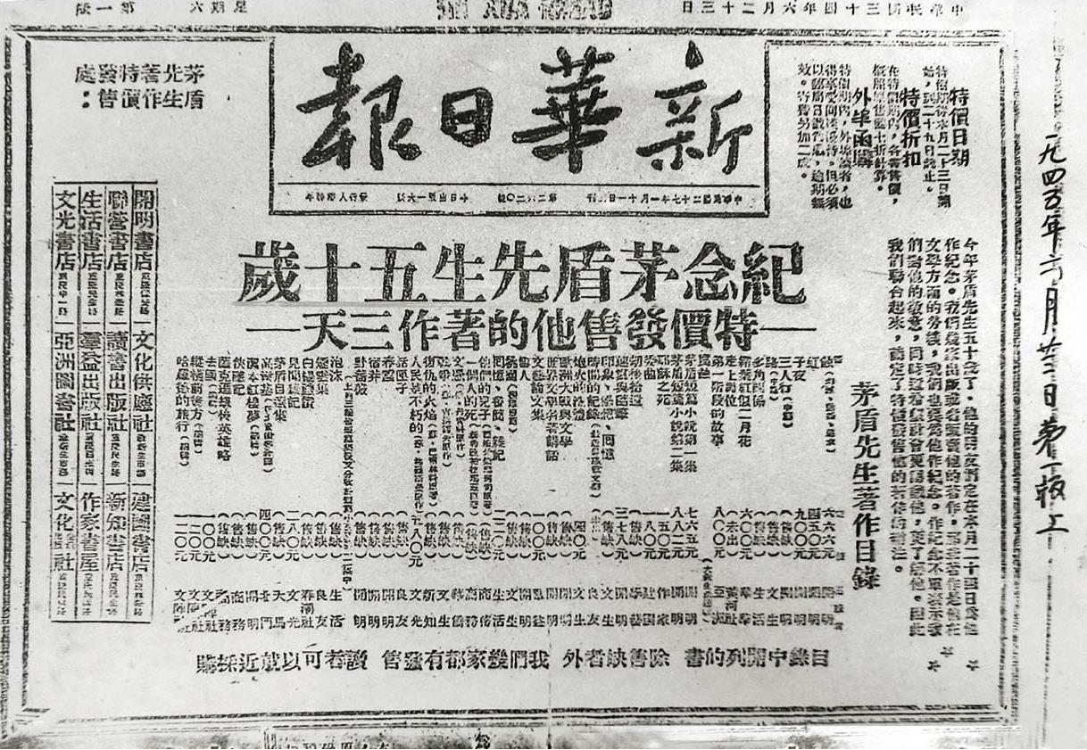 1945年,茅盾五十寿辰活动广告