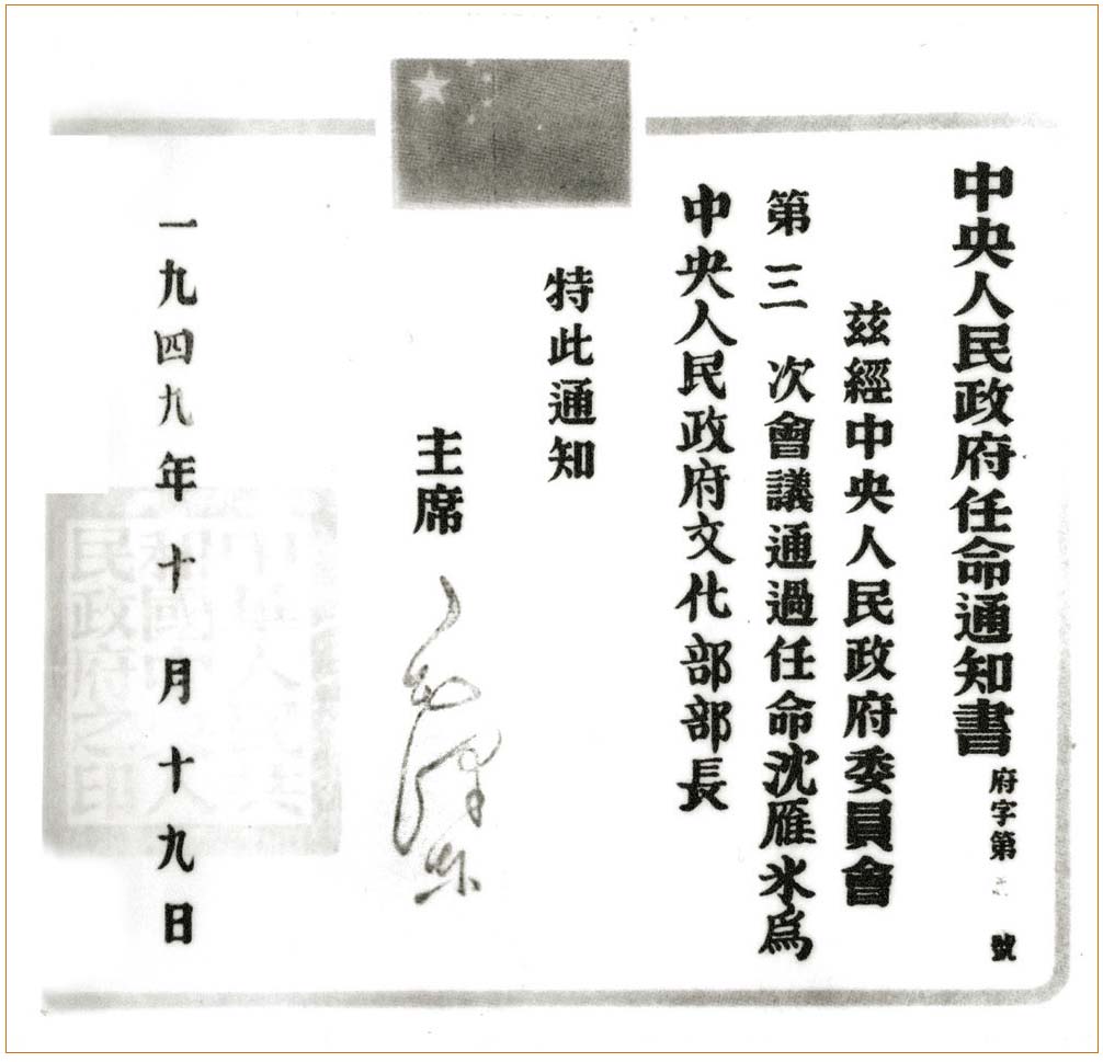 1949年10月,茅盾被任命为文化部部长
