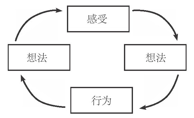 个人的生活经历和对外界事物的感知会改变我们的自我感受。不过,好的方面是,我们可以学会培养自尊。培养自尊的一个有效方法是尝试关注自己的想法、想象力、感受和行为。请观察一下图2-1所示的循环。你认为其中哪一个是干预的最佳起点?