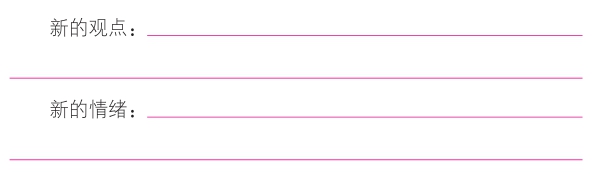 2.结合合理情绪疗法中的ABC理论,针对这件事情,如果用另外一个新观点(强有力信念)来替换你内心的旧观点,你的新观点是什么呢?当你有了这个新观点,你的情绪有没有变化?身体有没有变化?