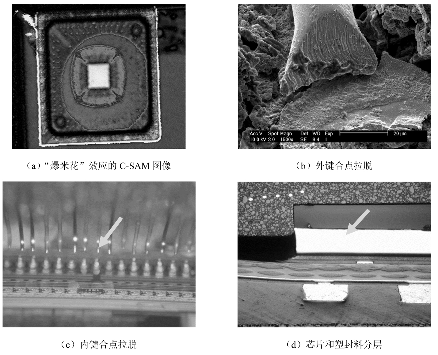 图3-1 塑料封装“爆米花”效应的典型失效形式